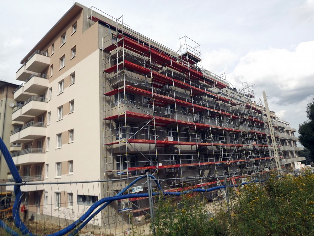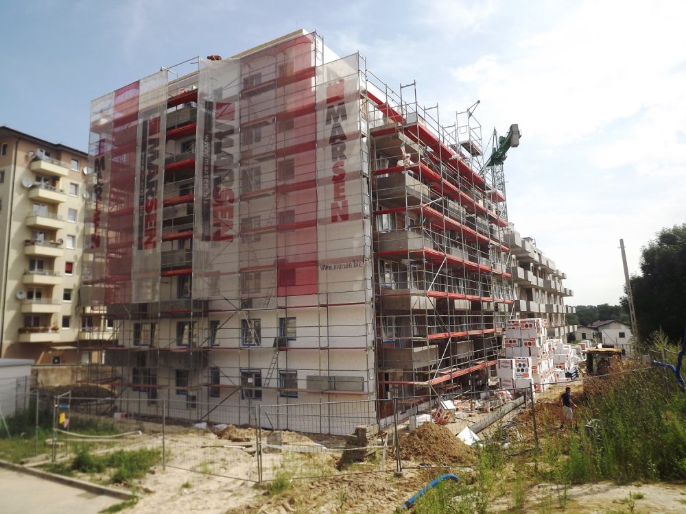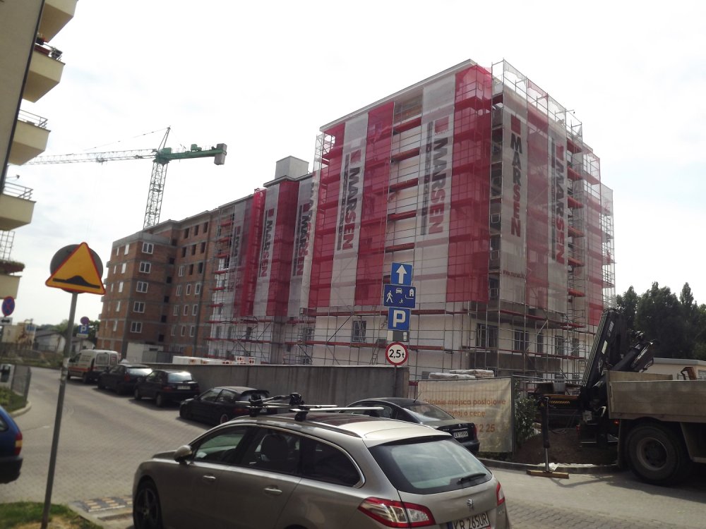 | OPIS: | Sześciopiętrowy budynek z 111 mieszkaniami(jednopoziomowe mieszkania) z garażem podziemnym dwupoziomowym i piwnicami. Powierzchnia 4500 m2. |